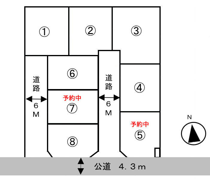 | 接道状況 | 東側約6m、西側約6m、南側公道約4.3m |