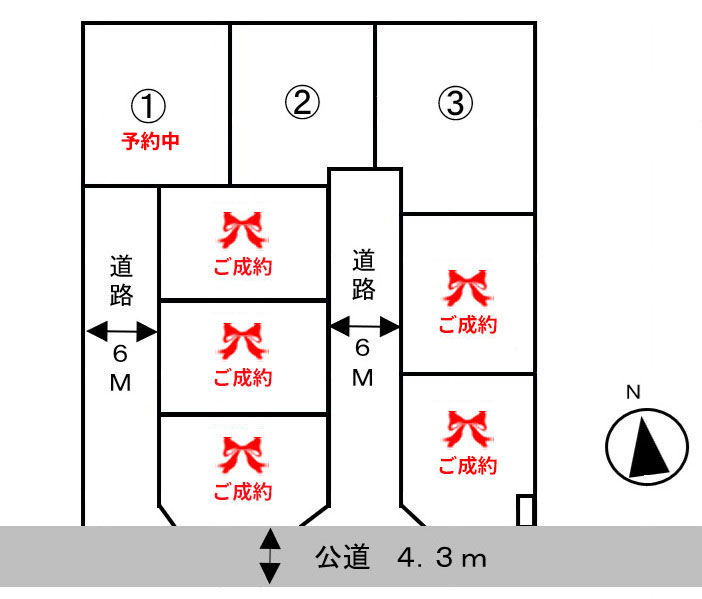 | 接道状況 | 東側約6m、西側約6m、南側公道約4.3m |