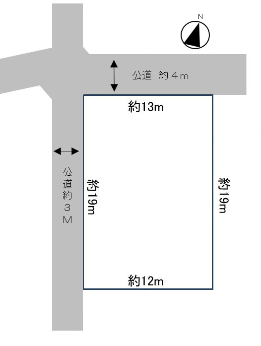 | 接道状況 | 公道 北側 約4m・公道 西側 約3m |